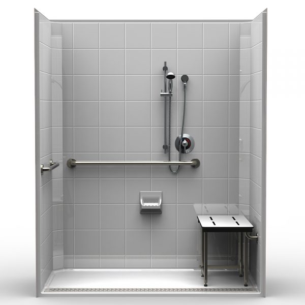 ADA Roll-In Shower – One piece 63×33 – Eight Inch Tile Look