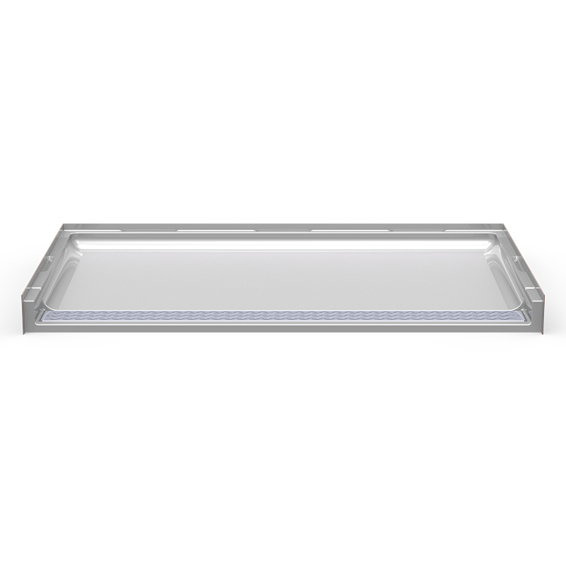 1 piece 63″ x 37″ ADA compliant shower pan with 1 inch traditional threshold, and front trench drain. Luxurious polyester gelcoat finish. With an integral level supported bottom, this shower pan offers exceptional strength. No mud setting required. Shower pan complies with ADA inside dimensions of 60″ x 30″ for roll-in showers. Accessory configurations to meet accessibility guidelines are priced and sold separately.