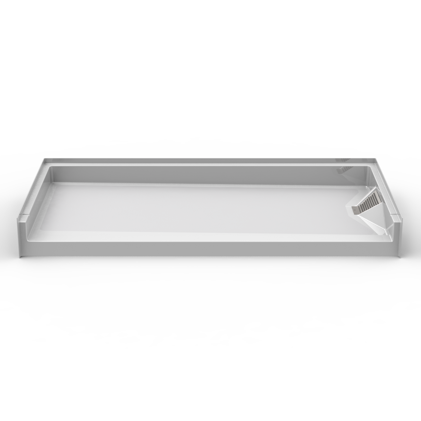 1 piece 60″ x 30″ shower pan with 2.5 inch traditional threshold, and side outlet drain. Luxurious polyester gelcoat finish. With an integral level supported bottom, this shower pan offers exceptional strength. No mud setting required. All accessories are priced separately. Accessories available: collapsible water stopper & drain.