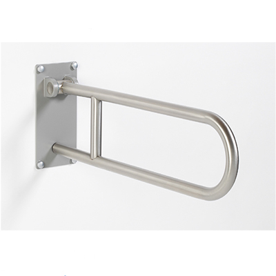 Barrier Free Living fold up stainless steel open loop bar features a locking hinge which permits the grab bar to swing freely and lock securely in the horizontal or vertical position. The bar is made of alloy and stainless steel and is available in peened, knurled, shur-grip or painted finish.